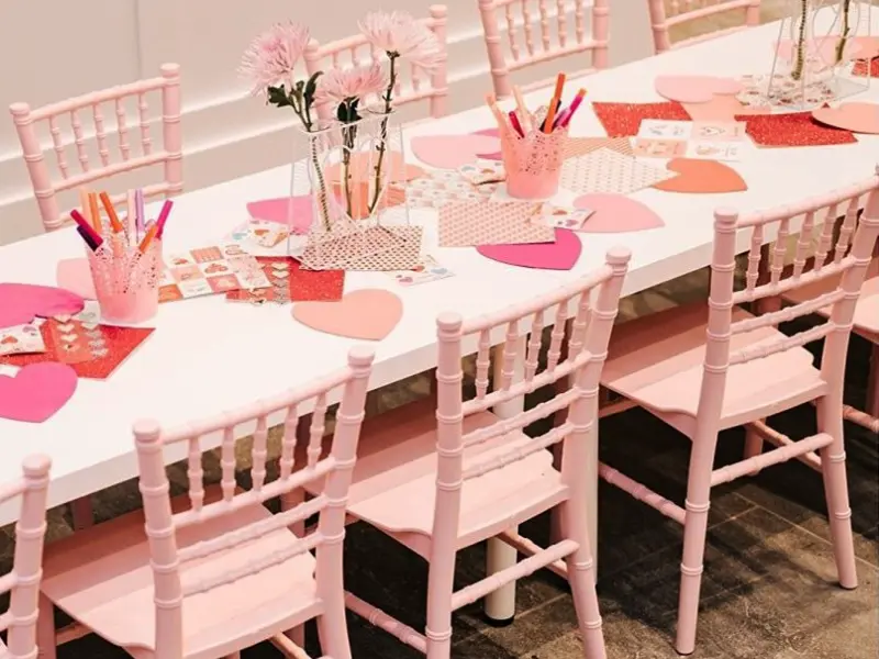 Tiffany stolice i stolovi se mogu lako stilizovati za mini radionice: bojanke sa motivima sa tog događaja, slagalice sa likovima iz crtanih filmova ili čak kreativni zadaci za najmlađe.